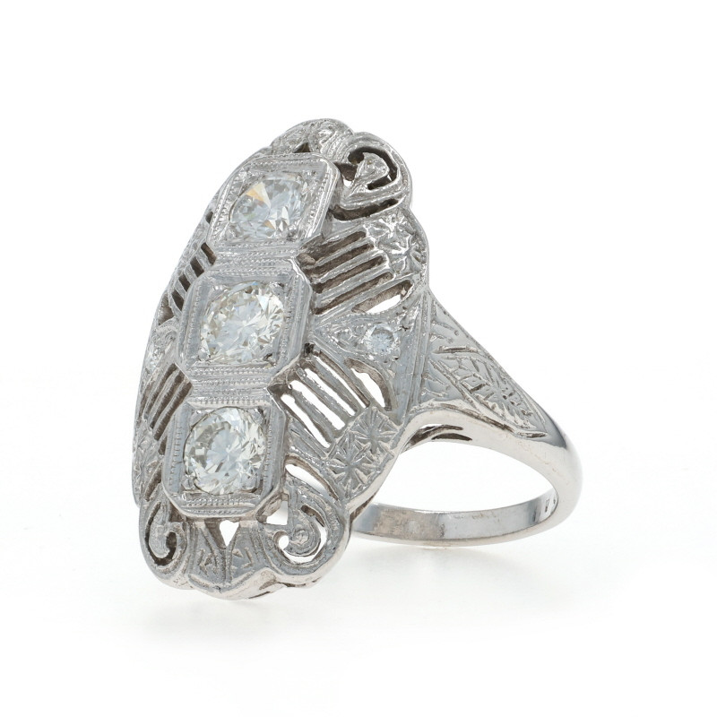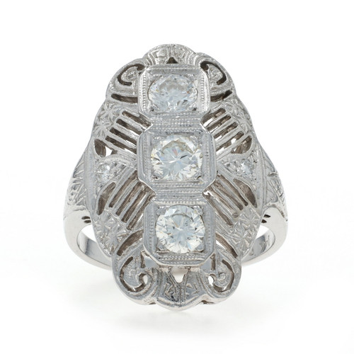 White Gold Diamond Art Deco Dinner Ring Three-Stone Ring 14k Rd 1.05ctw Vintage