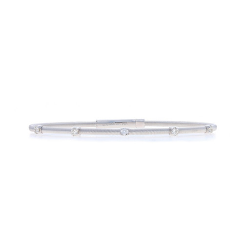 White Gold Diamond Bangle Bracelet 7" 14k Round Brilliant .25ctw Flex Five Stone
