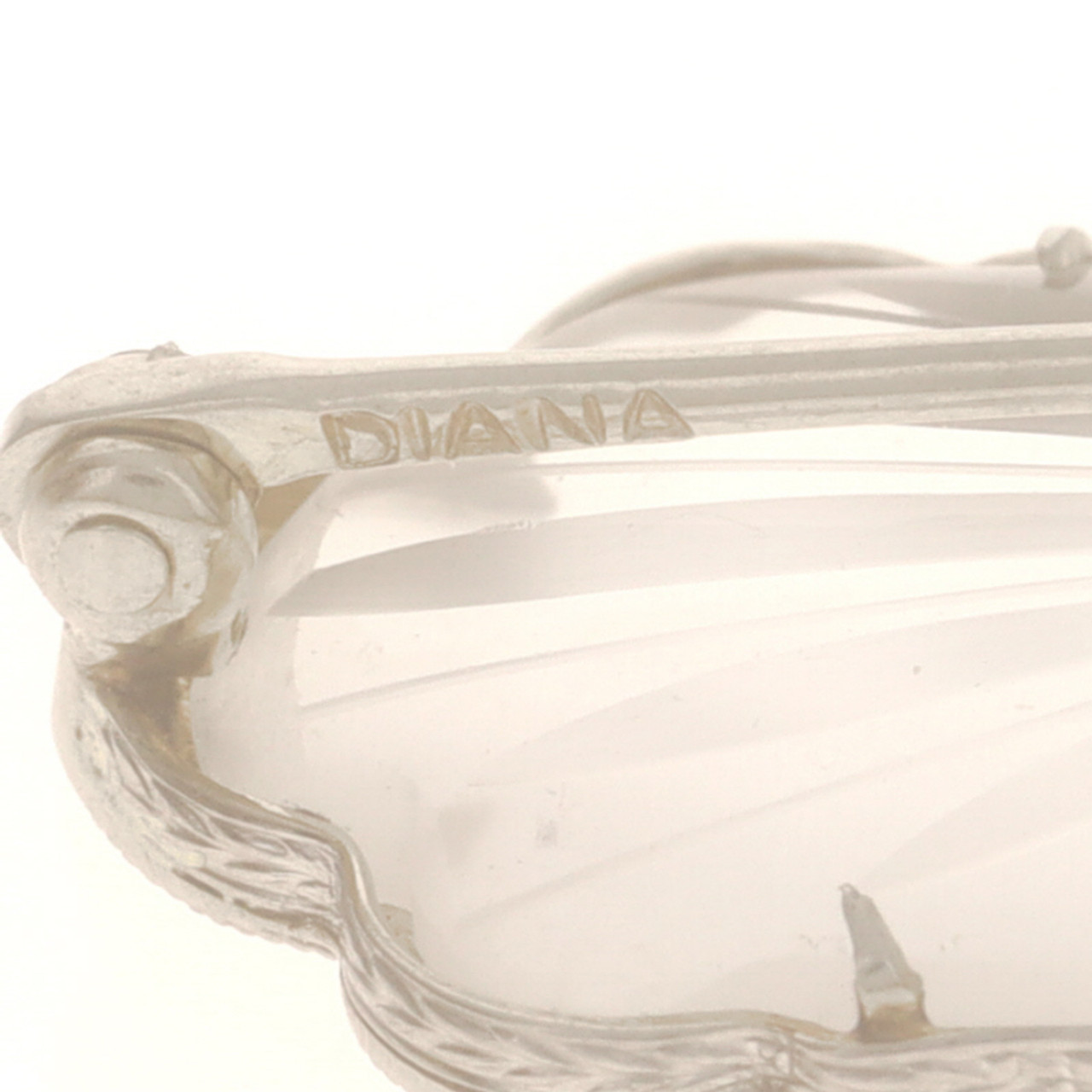 White Gold Diamond Camphor Glass Art Deco Brooch 14k European Vintage Pin