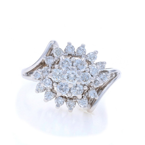 White Gold Diamond Cluster Cocktail Bypass Ring - 10k Round 1.00ctw Floral