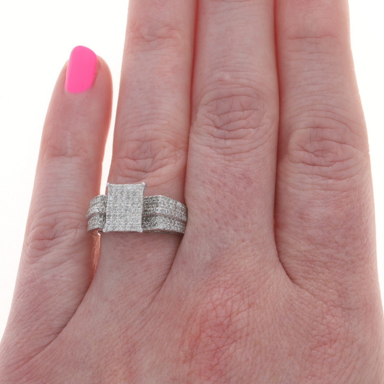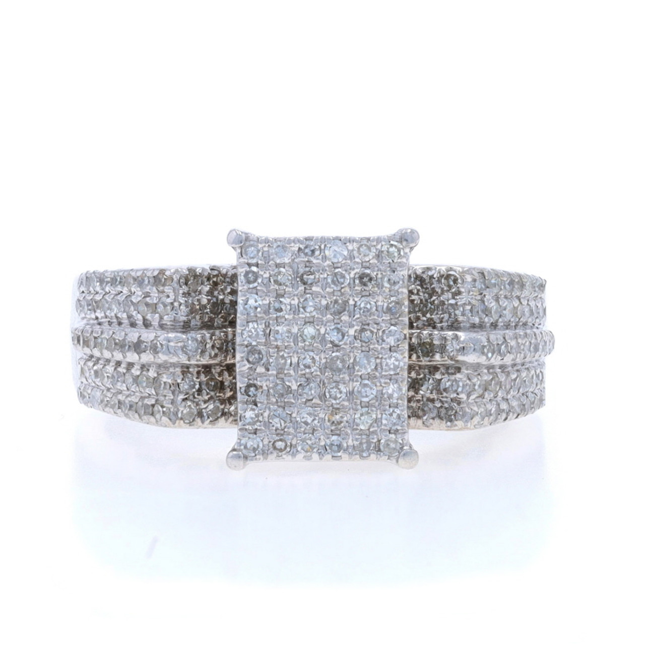 White Gold Diamond Cluster Cocktail Ring 10k Single 1.00ctw Pave