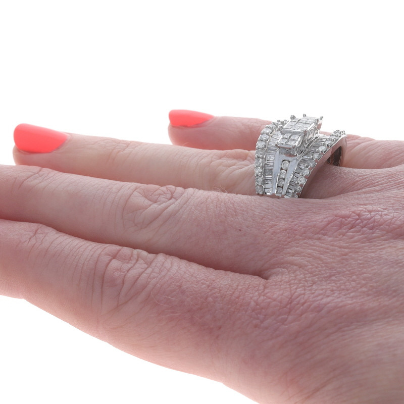 White Gold Diamond Cluster Cocktail Ring 14k Princess Baguette Round 2.00ctw