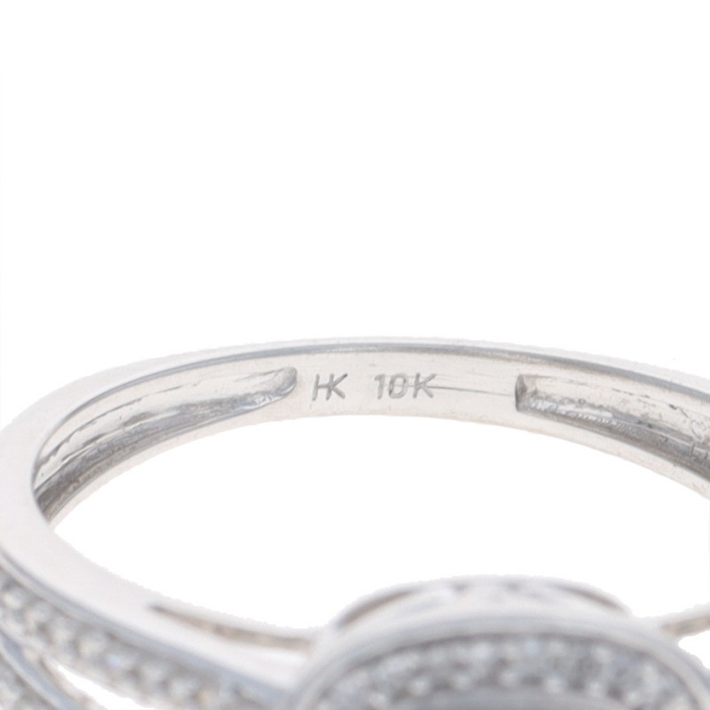 White Gold Diamond Cluster Halo Engagement Ring - 10k Princess & Round .50ctw