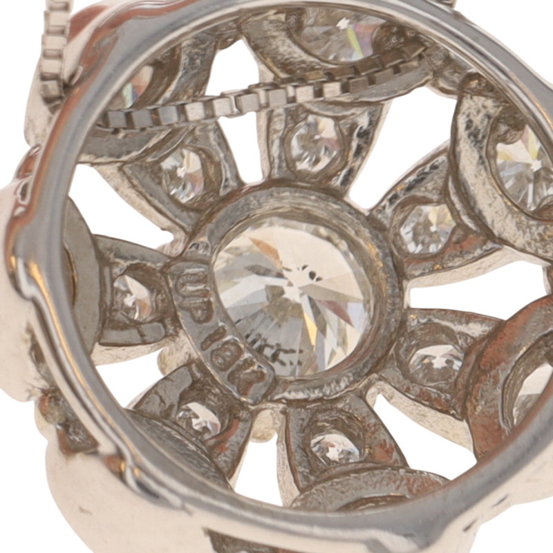 White Gold Diamond Cluster Halo Pendant Necklace -18k Rd .90ctw Floral Snowflake
