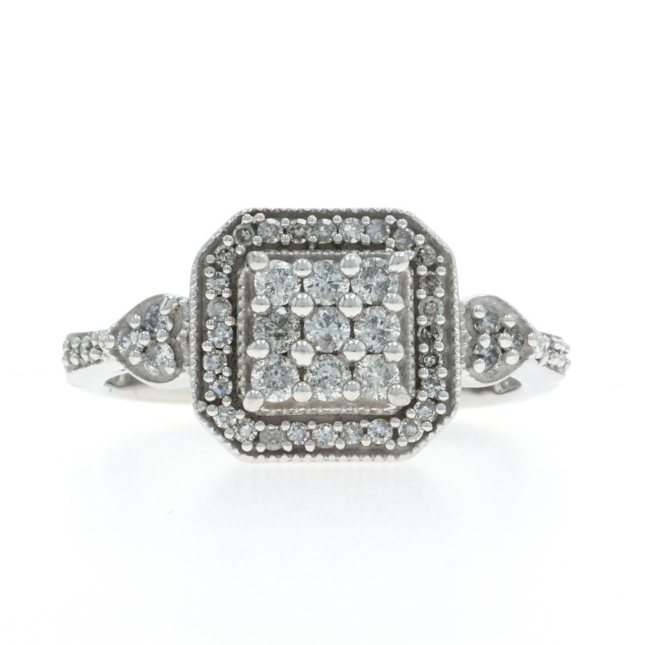 White Gold Diamond Cluster Halo Ring 10k Round .50ctw Engagement