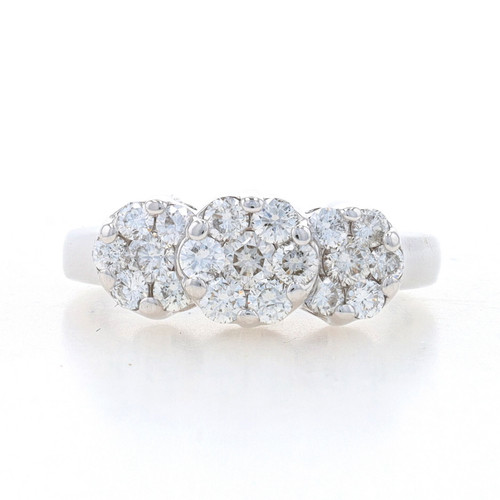 White Gold Diamond Cluster Halo Ring 14k Rnd 1.00ctw Three-Stone Insp Engagement
