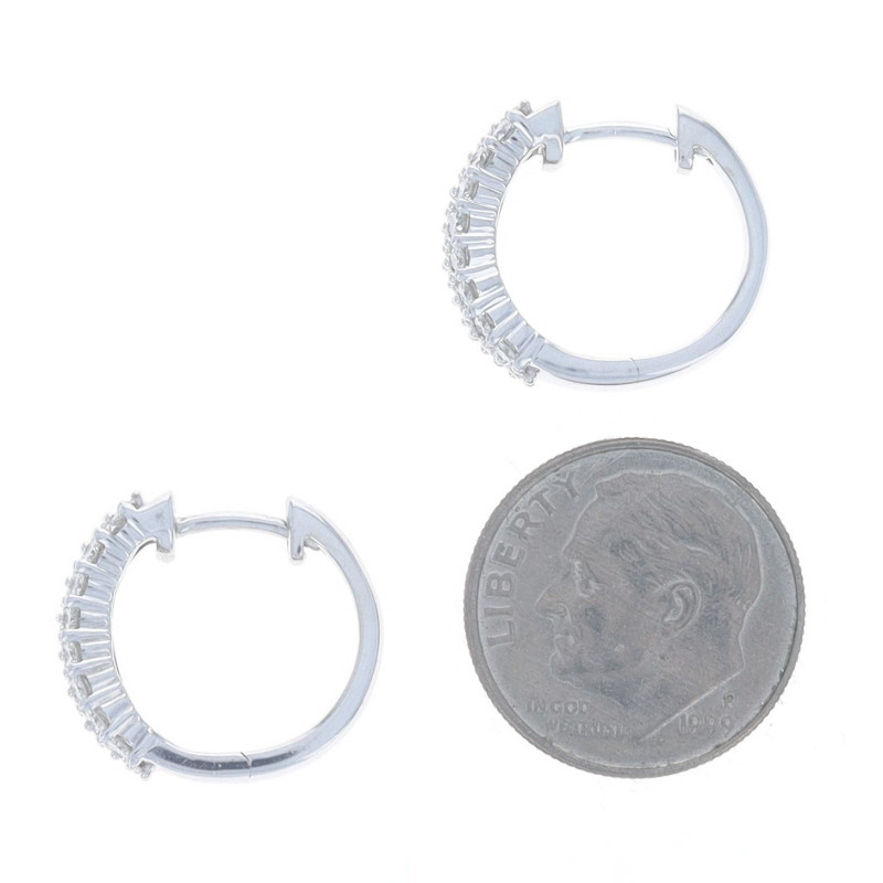 White Gold Diamond Cluster Hoop Earrings 14k Round Brilliant 1.18ctw Pierced
