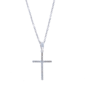 White Gold Diamond Cross Pendant Necklace 10k Single Cut .10ctw Faith Adjustable