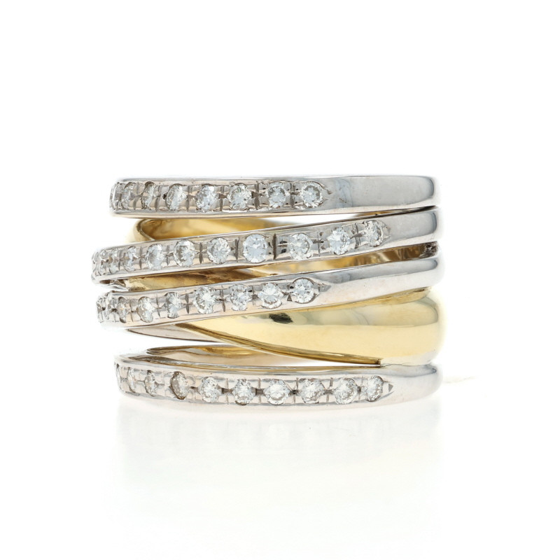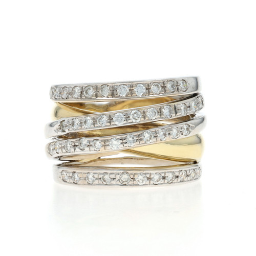 White Gold Diamond Crossover Band - 18k Round Brilliant .66ctw Ring Sz 6