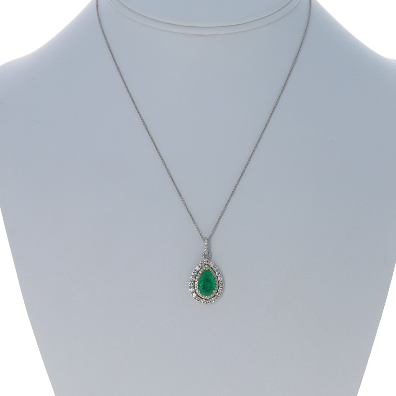 White Gold Emerald & Diamond Double Halo Pendant Necklace 16" 18k Pear 2.75ctw GIA