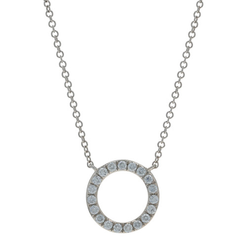 White Gold Diamond Eternity Necklace 18" - 14k Rd .26ctw Halo Circle Adjustable
