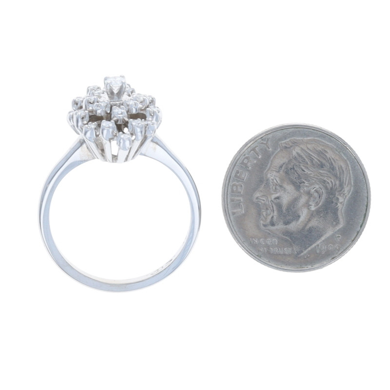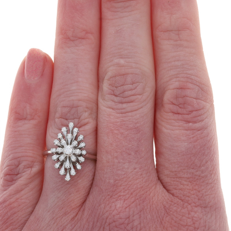 White Gold Diamond Floral Snowflake Cluster Cocktail Ring - 14k Round .30ctw