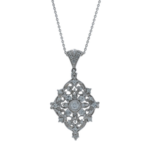 White Gold Diamond Floral Snowflake Medallion Necklace 16" - 14k Round 1.00ctw