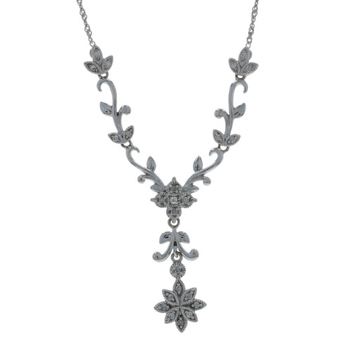 White Gold Diamond Floral Vine Lariat Necklace 18 1/4" - 10k Single Cut .15ctw