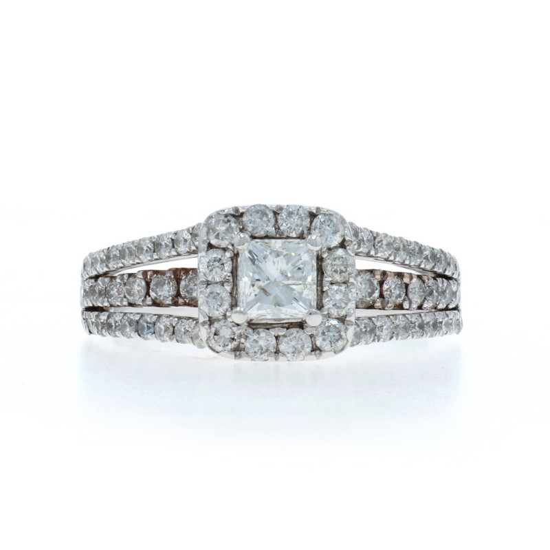 White Gold Diamond Halo Engagement Ring - 14k Princess & Round Brilliant 1.00ctw