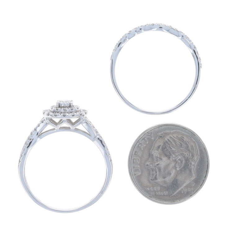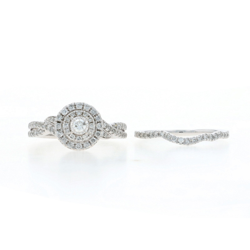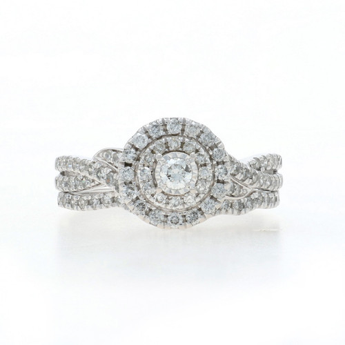 White Gold Diamond Halo Engagement Ring & Wedding Band - 10k Round .66ctw