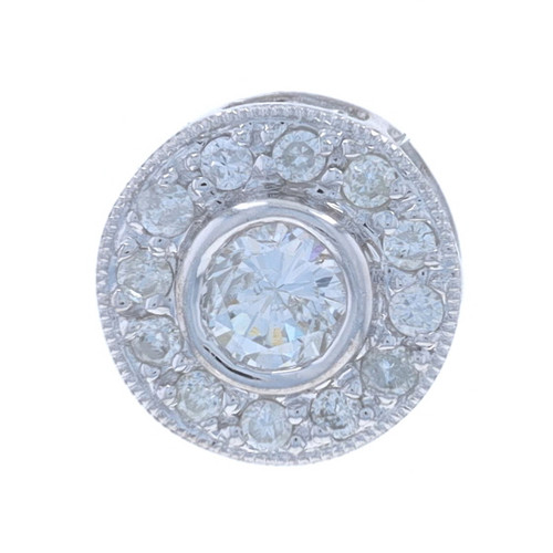 White Gold Diamond Halo Pendant - 14k Round Brilliant .25ctw Milgrain