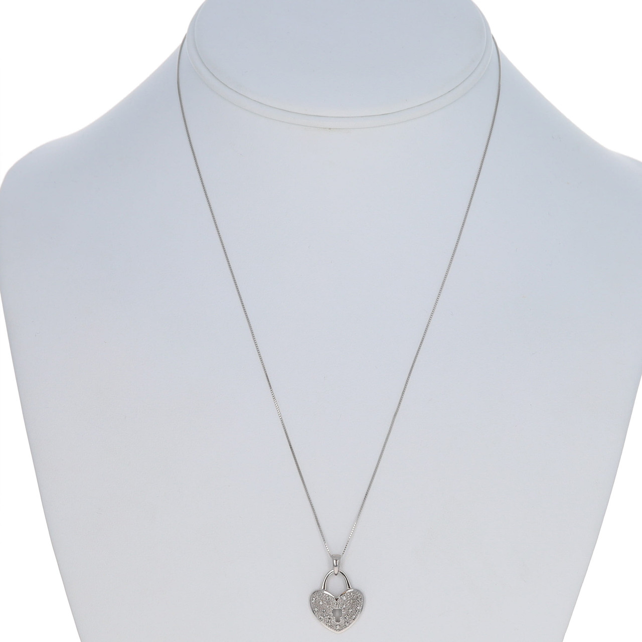 White Gold Diamond Heart Padlock Necklace 18" - 14k Single Cut .10ctw Love