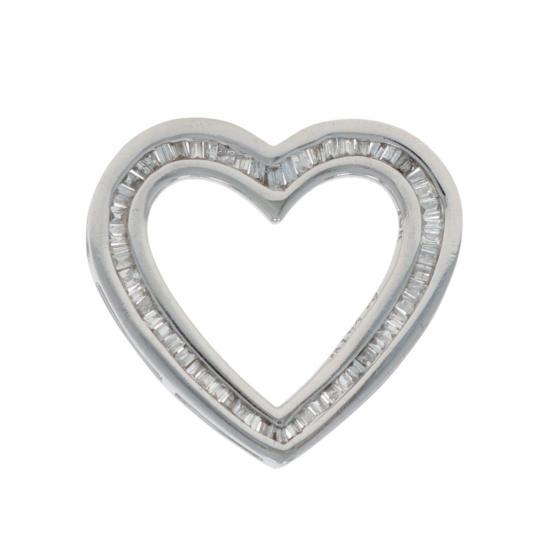 White Gold Diamond Heart Pendant - 14k Baguette .25ctw Love