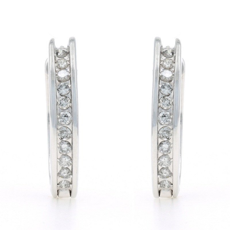 White Gold Diamond Hoop Earrings - 14k Round Brilliant .50ctw Pierced