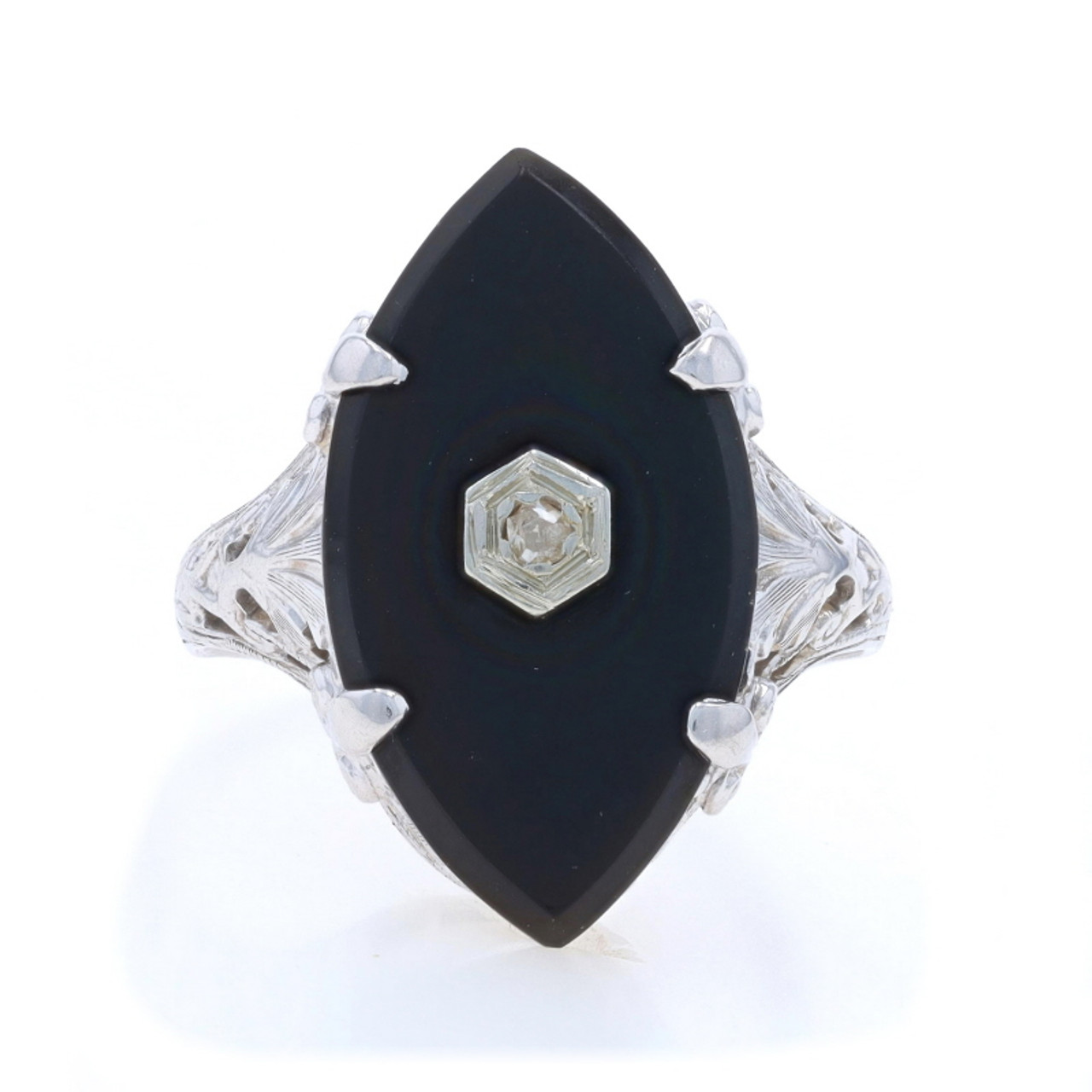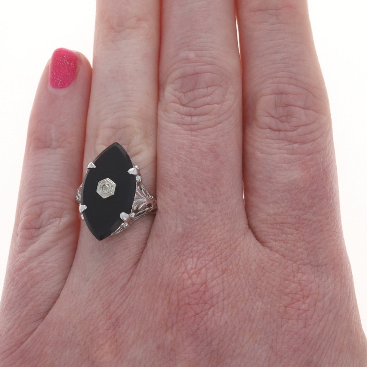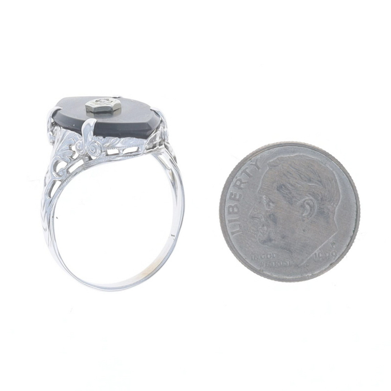 White Gold Diamond Onyx Art Deco Ring 14k Single Scrollwork