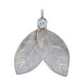 White Gold Diamond Pair of Leaves Solitaire Pendant 14k Round Foliage Charm