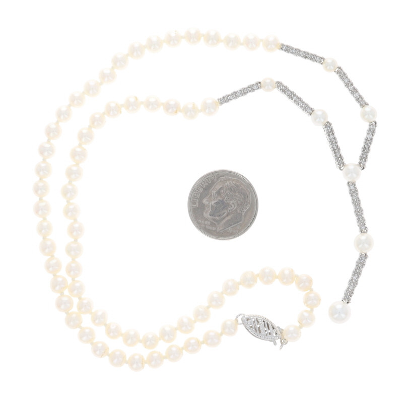 White Gold Diamond Pearl Lariat Necklace 17" - 14k Single Cut .40ctw