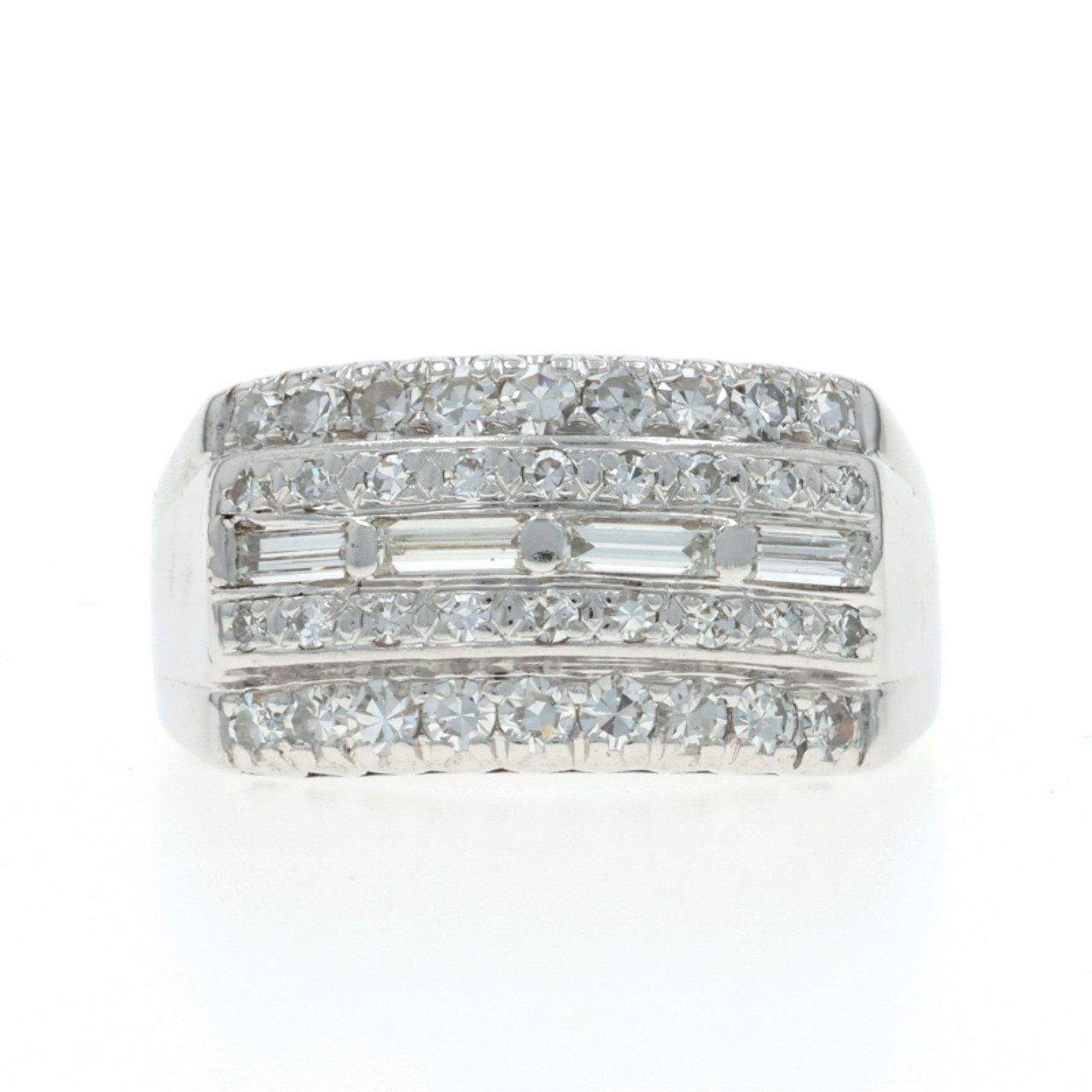 White Gold Diamond Retro Cluster Cocktail Band 14k Baguette & Single .74ctw Ring
