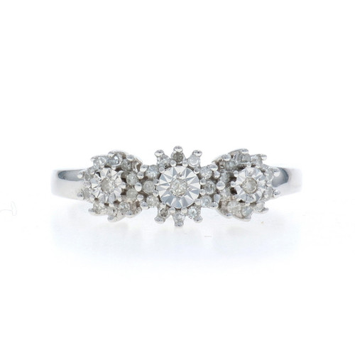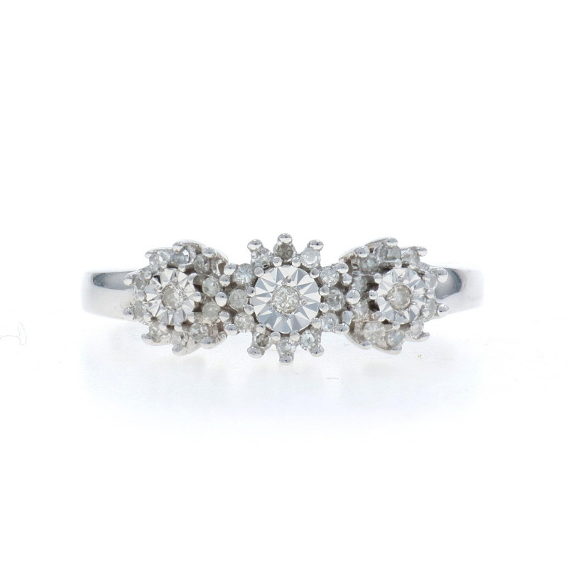 White Gold Diamond Ring - 10k Single & Round Brilliant .25ctw Halo Trio
