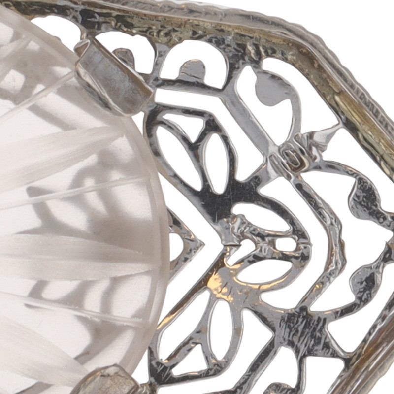 White Gold Diamond Rock Crystal Art Deco Necklace 16 3/4" - 10k Floral Vintage
