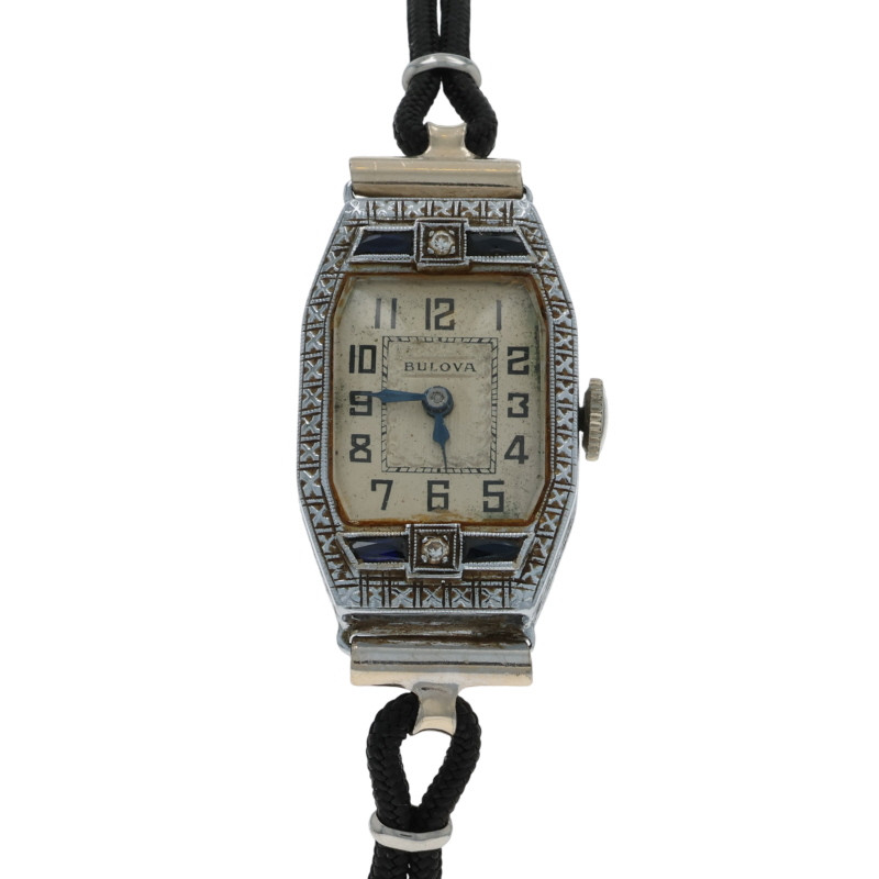 White Gold Diamond Sapphire Art Deco Ladies Watch - 14k Vintage