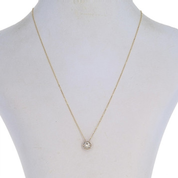 White Gold Diamond Solitaire Halo Pendant Necklace 18" 14k Round .83ct GIA
