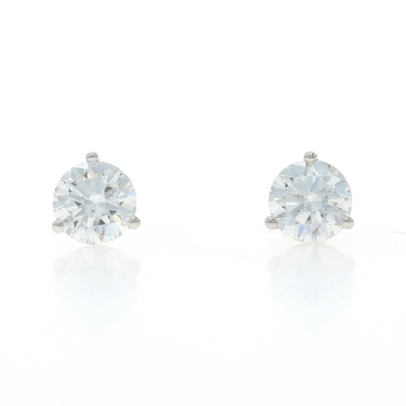 White Gold Diamond Stud Earrings - 14k Round 2.00ctw GIA Pierced