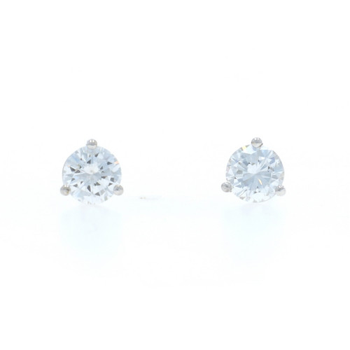 White Gold Diamond Stud Earrings - 14k Round Brilliant .57ctw Pierced