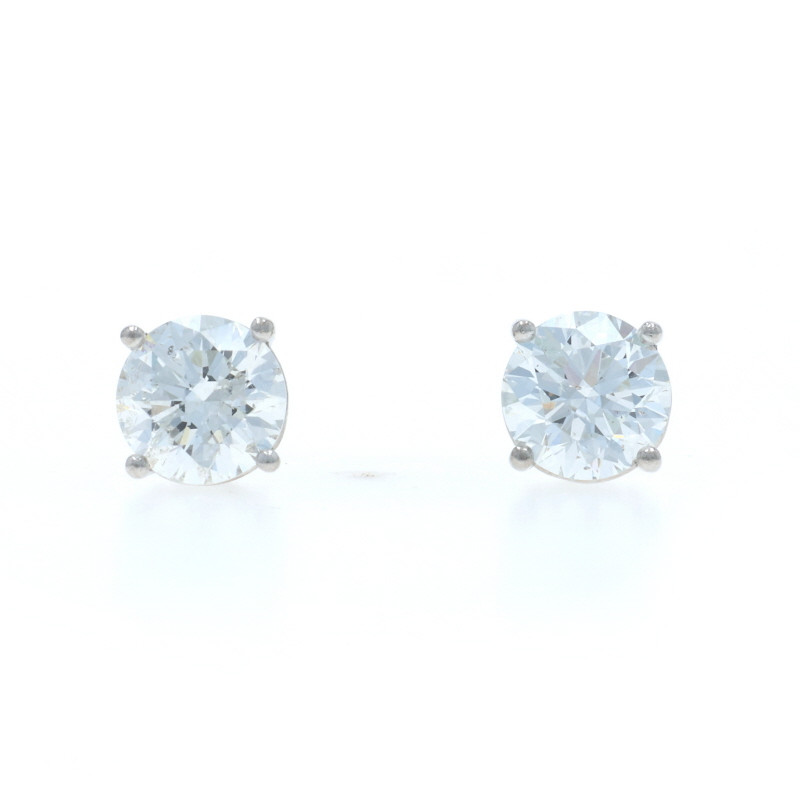 White Gold Diamond Stud Earrings - 18k Round Brilliant 2.04ctw Pierced