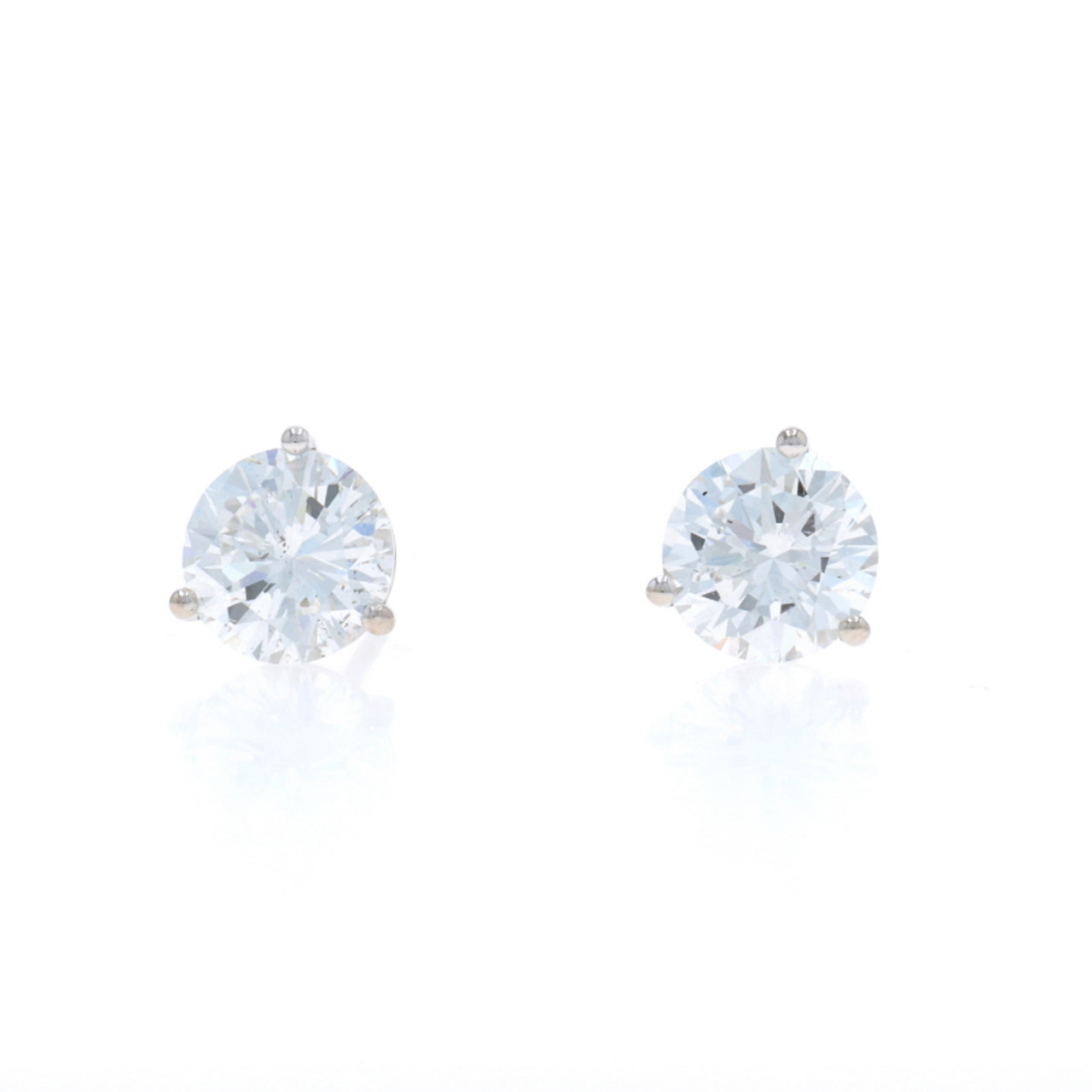 White Gold Diamond Stud Earrings - 18k Round Brilliant 2.41ctw GIA Pierced