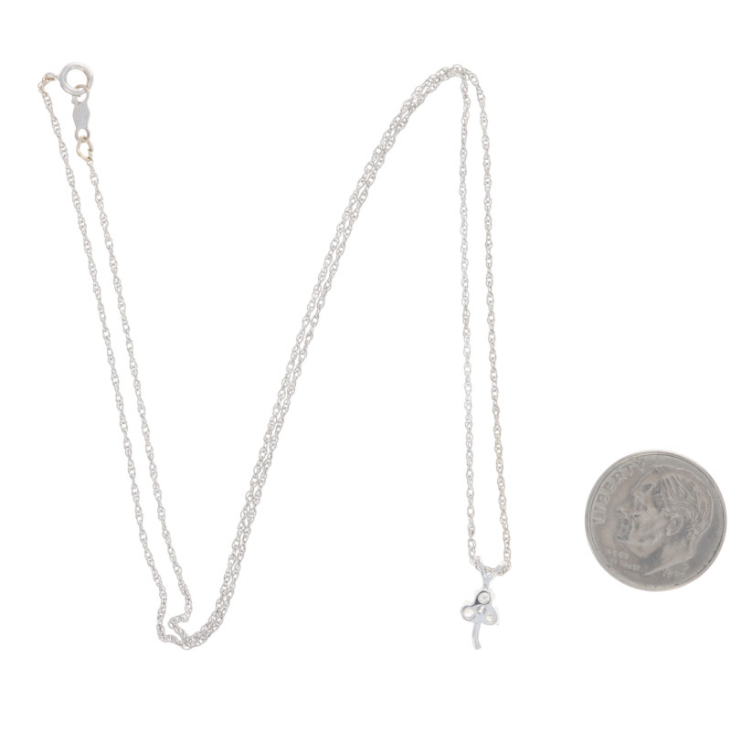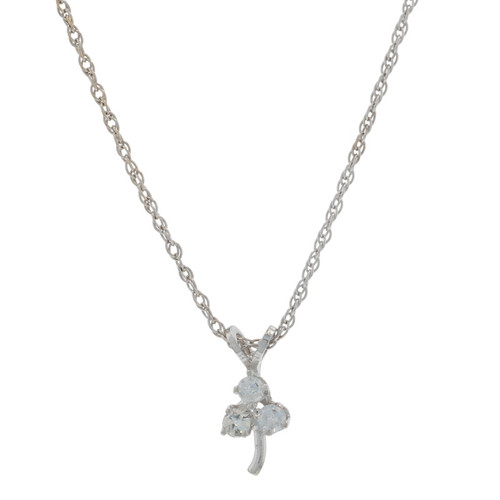 White Gold Diamond Three-Leaf Clover Necklace 18" - 14k Single .12ctw Shamrock