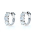 White Gold Diamond Three-Stone Hoop Earrings - 14k Round 1.51ctw Pierced