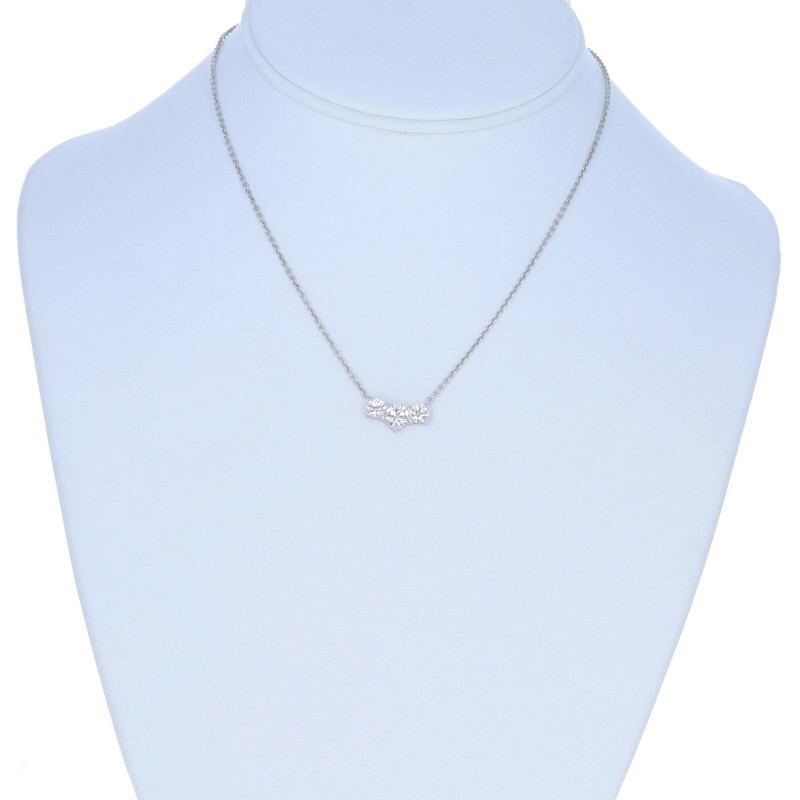 White Gold Diamond Three-Stone Necklace 15" 18k Round 1.58ctw GIA