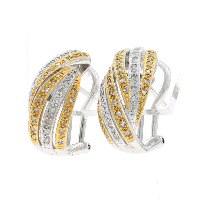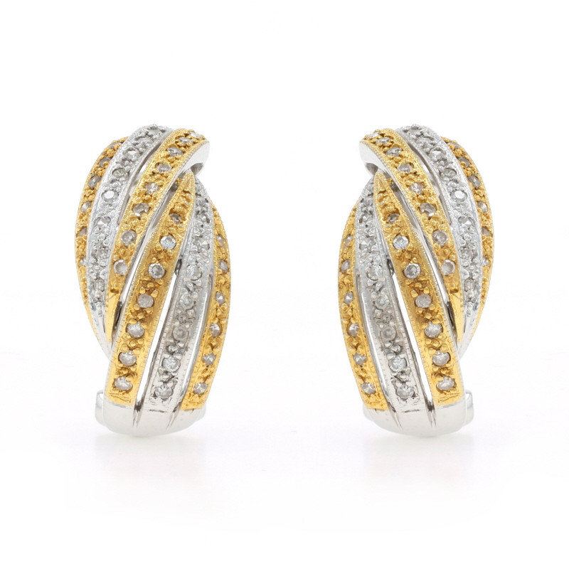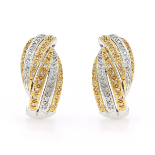 White Gold Diamond Twist J-Hoop Earrings - 14k Single Cut .50ctw Pierced