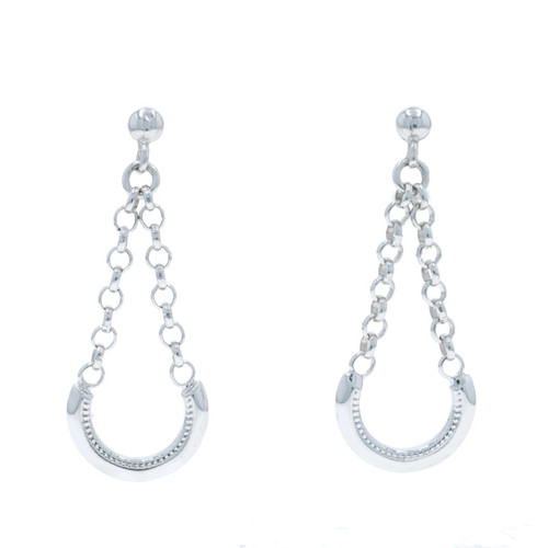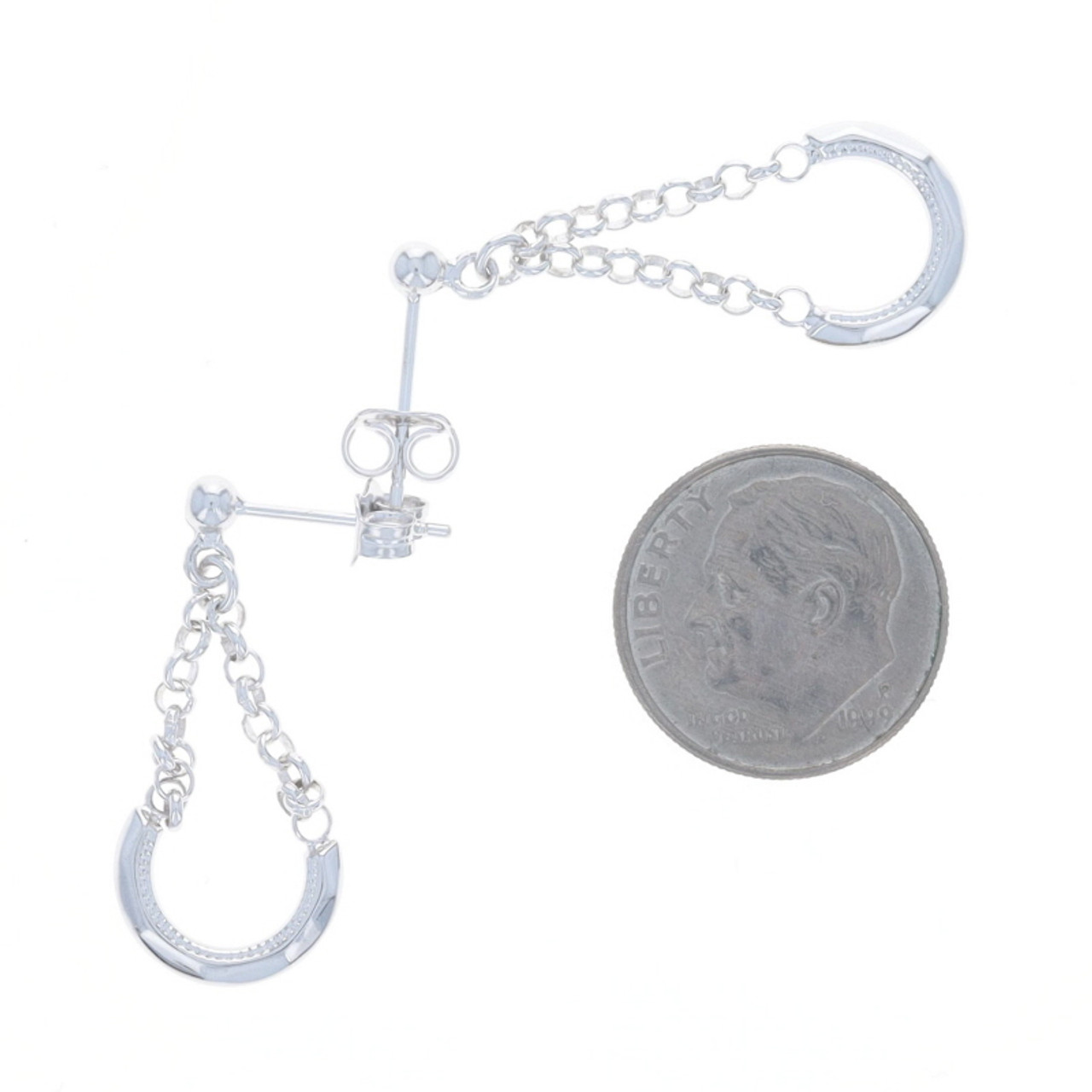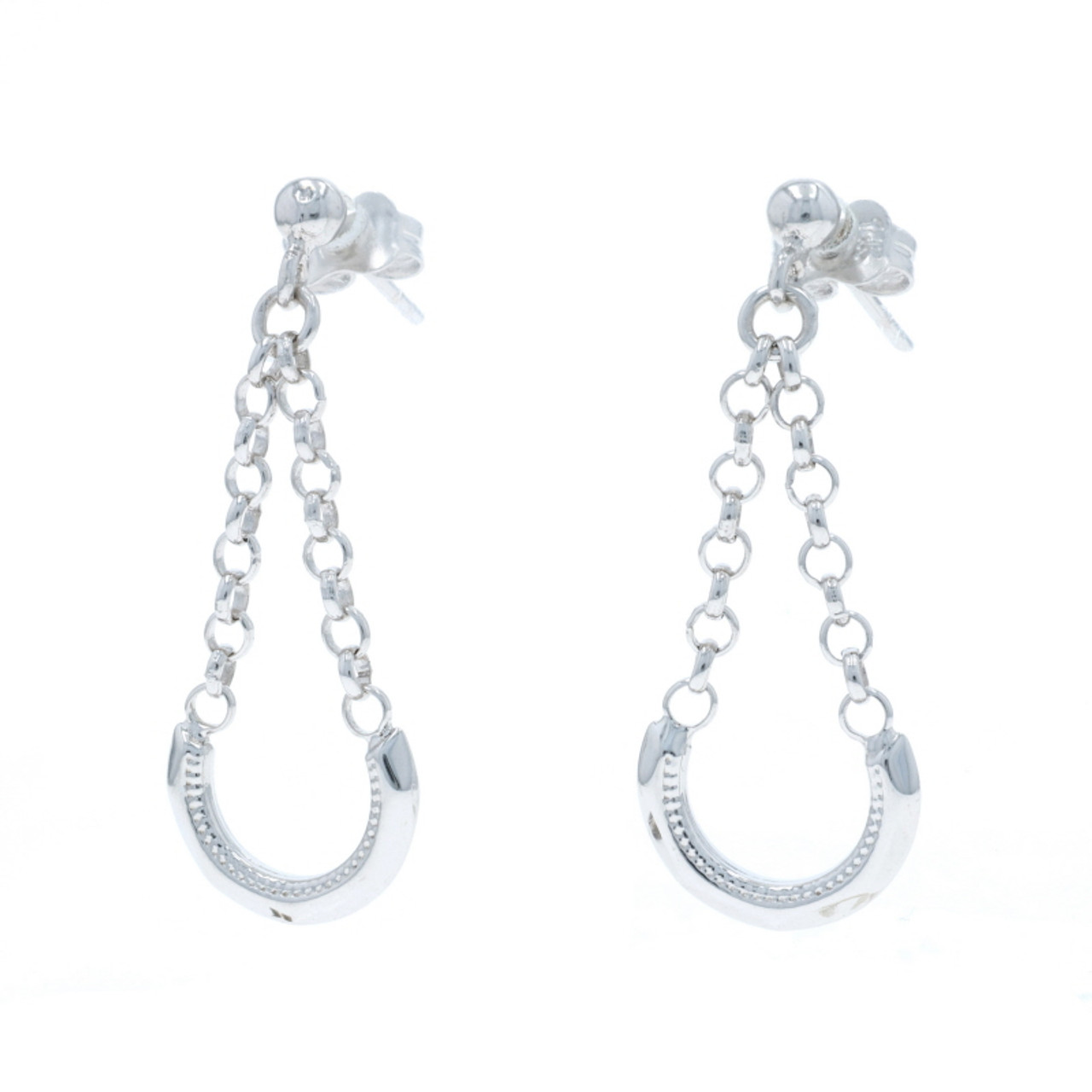 White Gold Hanging Curved Bar Dangle Earrings 14k Teardrop