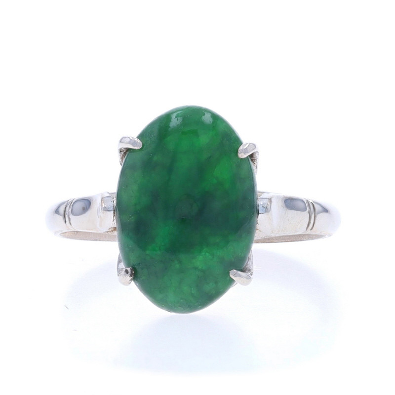 White Gold Jadeite Retro Cocktail Solitaire Ring 14k Oval Cabochon 3.13ct GIA