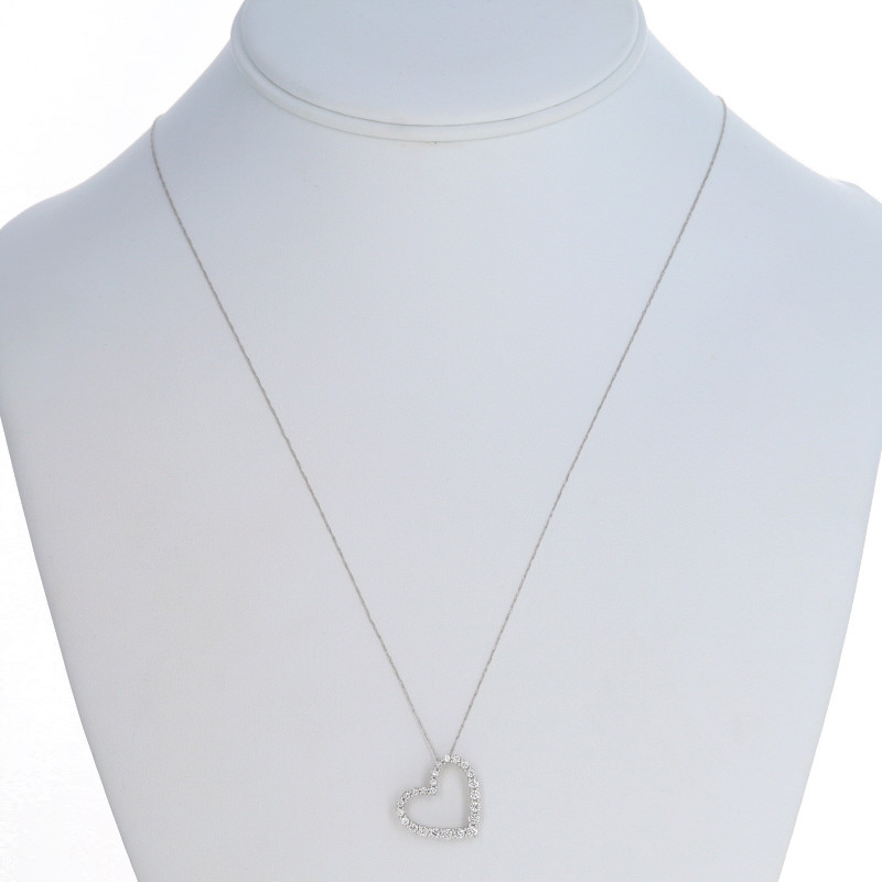 White Gold Lab-Created Diamond Heart Necklace 20 1/4" -14k Rd 1.00ctw Adjustable