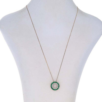 White Gold Lab-Created Emerald Lab-Created Sapp Halo Necklace 18" 10k 4.00ctw