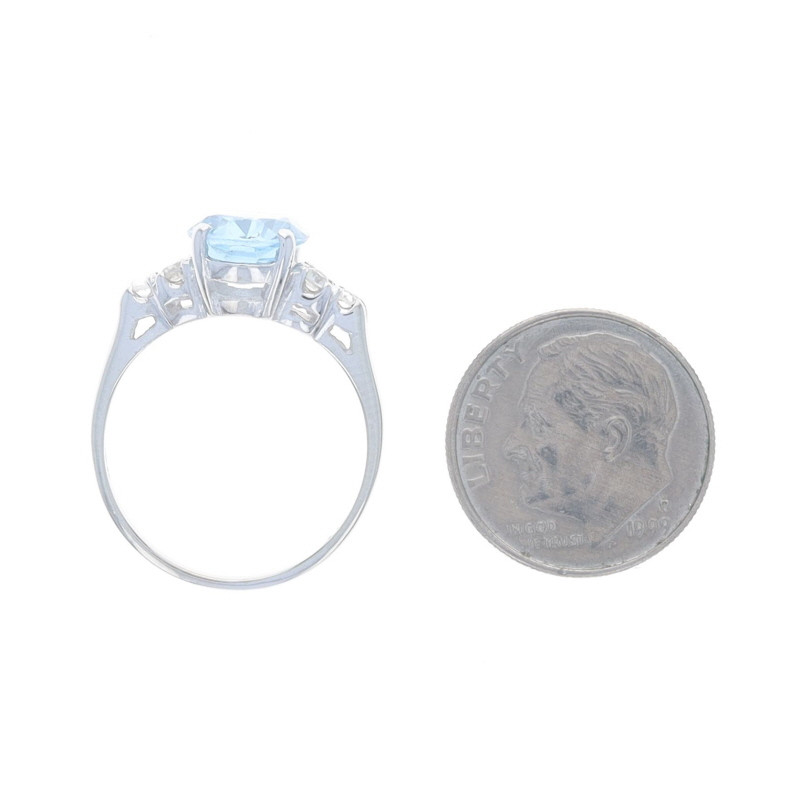 White Gold Lab-Created Spinel Vintage Ring - 10k Oval 2.59ctw Blue & White
