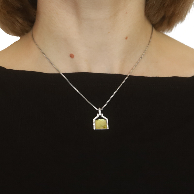White Gold Lemon Quartz over MOP Diamond Necklace 16" - 18k Square Rose .32ctw
