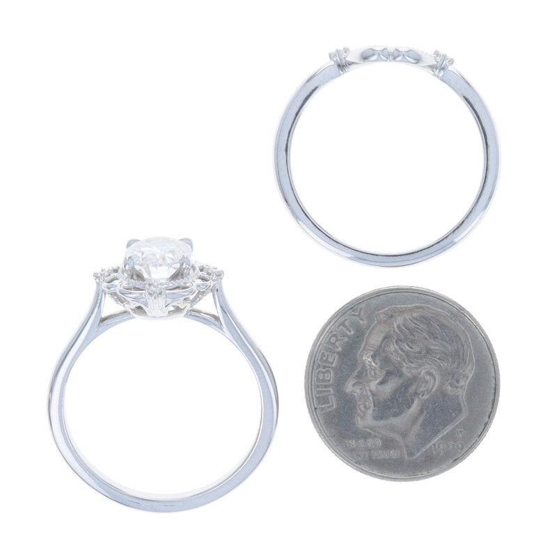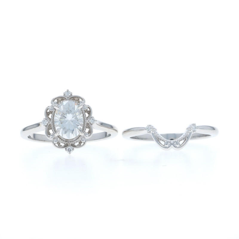 White Gold Moissanite Engagement Ring & Wedding Band - 14k Oval 1.47ctw Floral
