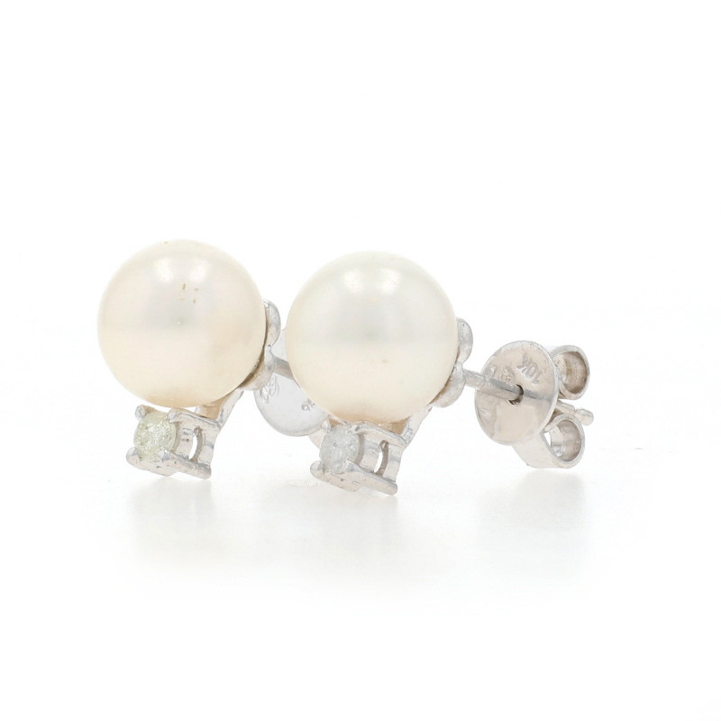White Gold Pearl Diamond Stud Earrings - 14k .10ctw Pierced