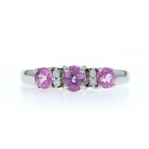 White Gold Pink Sapphire Diamond Ring - 14k Oval & Round 1.19ctw Three-Stone