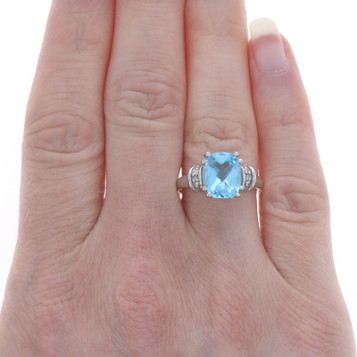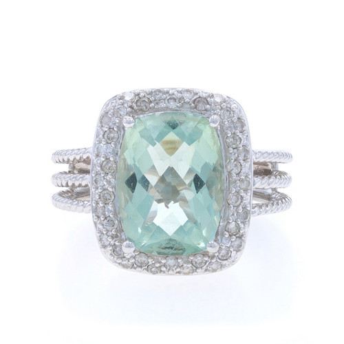 White Gold Prasiolite Diamond Cocktail Ring - 14k Cushion Checkerboard 6.14ctw
